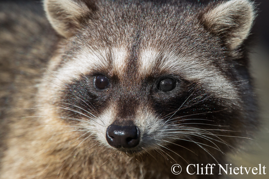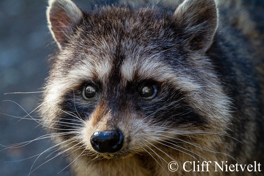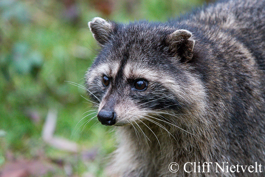 A close-up portait of an elderly raccoon, Vancouver, British Columbia