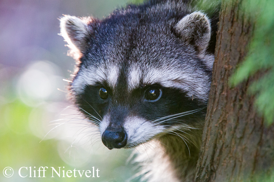 A raccoon peering around the tree, Vancouver, British Columbia