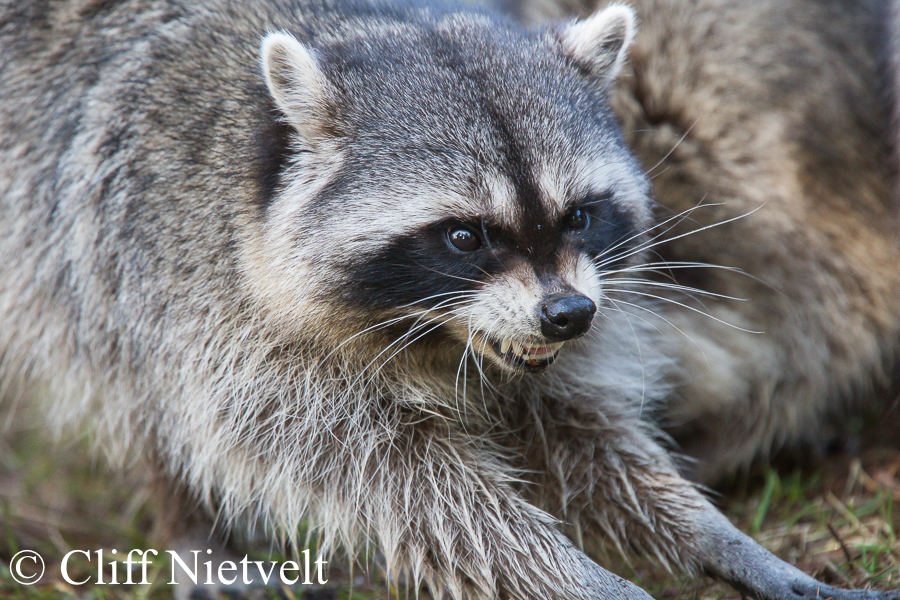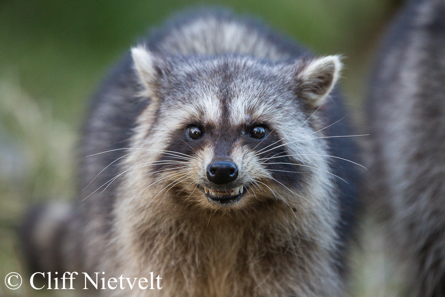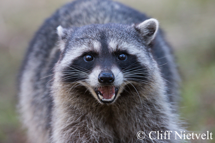 A young raccoon warning others to stay away, Vancouver, British Columbia
