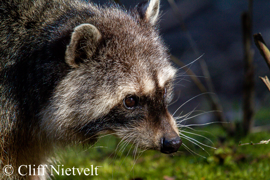 A portrait of an older raccoon late in the day, Vancouver, British Columbia